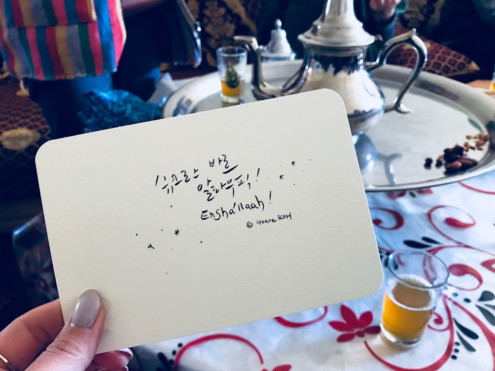 나는 작은 종이 위에 캘리그라피로 적었다.